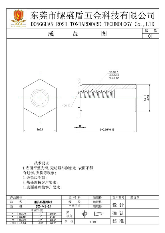 SO-M5-14 壓鉚螺母柱