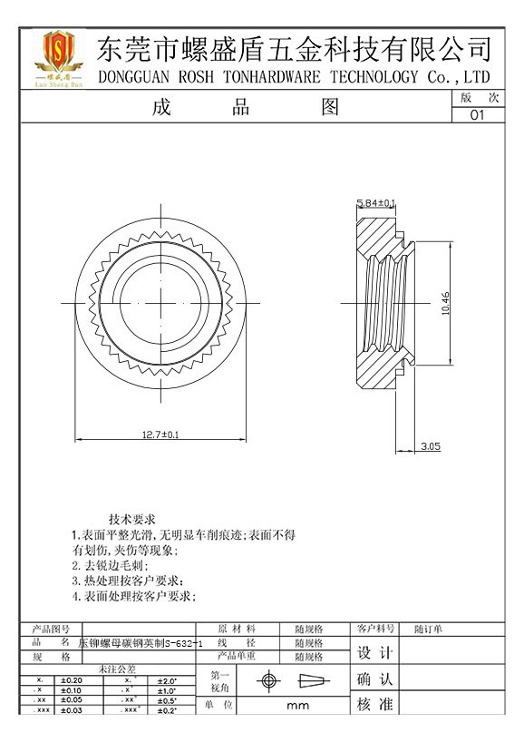 壓鉚螺母 S-632-1英制