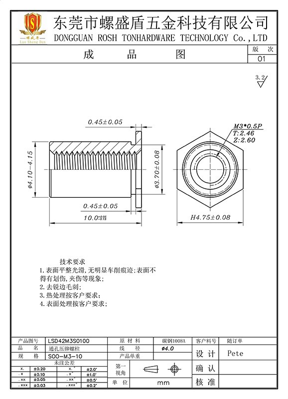 SOO-M3-10 壓鉚螺母柱
