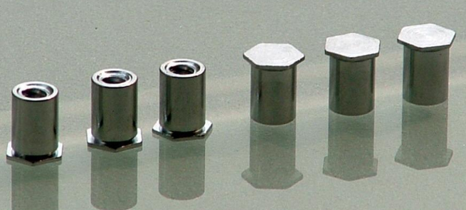 首先需要先在板金上鉆孔才行。壓鉚螺母應(yīng)用鈑金安裝要求不銹鋼板硬度必須小于80RB,碳鋼板材硬度必須小于70RB使用沖孔方式鉚接的板材的最小厚度0.8mm,根據(jù)孔徑尺寸要精確控制,按0-+0.075mm的公差尺寸加工。