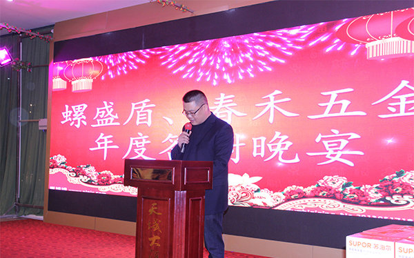 晚上7點,年會正式拉開帷幕,首先由螺盛盾五金科技有限公司齊秀永總經(jīng)理發(fā)表致辭,他說道,過去的2017年,在全體員工的共同努力下,公司各方面工作取得了滿意的成效。在新的一年里,要以市場為導(dǎo)向、以合理的管理為紐帶、提高公司知名度、集中打造螺盛盾品牌形象。面對新的挑戰(zhàn),螺盛盾要上下團結(jié)一心,迎接挑戰(zhàn);全體員工要蓄勢待發(fā),開創(chuàng)新局面!