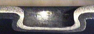 為控制鉚接底厚,某鉚接設備設計了行程開關,即限制凸模下行的機械死點。行程開關值的設定直接反映沖壓鉚接接頭的底厚值,設置過小將產(chǎn)生鉚點開裂(見圖4);設置過大則兩層板之間無法形成有效鑲嵌,從而影響鉚接接頭強度。油壓開關值是控制油壓缸壓力到位、凸模返程的油壓值。一般在行程開關和油壓開關都觸發(fā)的情況下鉚接設備結束鉚接,凸模返程。若油壓開關值設定偏小,則會出現(xiàn)沒達到足夠的底厚值,凸模即回程,不能實現(xiàn)有效鉚接的情況。因此,在設備進廠前及產(chǎn)品試生產(chǎn)階段要預設行程開關及油壓開關,并根據(jù)現(xiàn)場應用時鉚點的底厚狀態(tài)進行調整,確保鉚接質量。