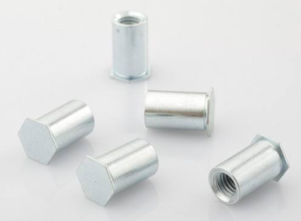 漲鉚件的部分材料在外力作用下發(fā)生塑性變形與基體材料形成緊配合,從而實(shí)現(xiàn)兩個(gè)零件的可靠連接。漲鉚工藝比較簡單,連接強(qiáng)度較低,通常用在對緊固件高度有限制且承受扭距不大的情況用使用。