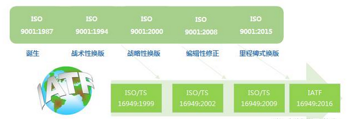 IATF對3個歐洲規(guī)范VDA6.1(德國),AVSQ(意大利),EAQF(法國)和QS-9000(北美)進行了協(xié)調(diào),在和ISO9001:2000版標準結(jié)合的基礎(chǔ)上,在ISO/TC176的認可下,制定出了ISO/TS16949:2002 這個規(guī)范。