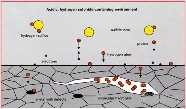 由于陰極保護的反作用或腐蝕的反作用,氫原子有可能進入鋼或其他金屬的基體,并滯留在基體內(nèi),在低于屈服強度(合金的公稱強度)的應(yīng)力狀態(tài)下,它將可能導(dǎo)致延伸性或承載能力的降低或喪失、裂紋(通常是亞微觀的),直致在服役過程或儲存過程中發(fā)生突然斷裂,造成嚴重的脆性失效。