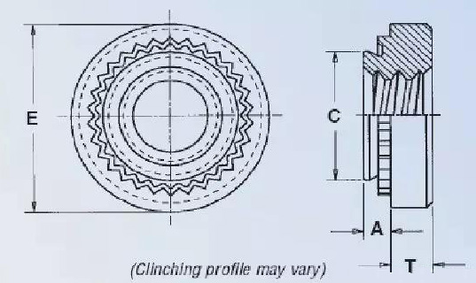 為薄板提供內(nèi)螺紋的自扣緊螺母,板最薄可達 0.8 mm。